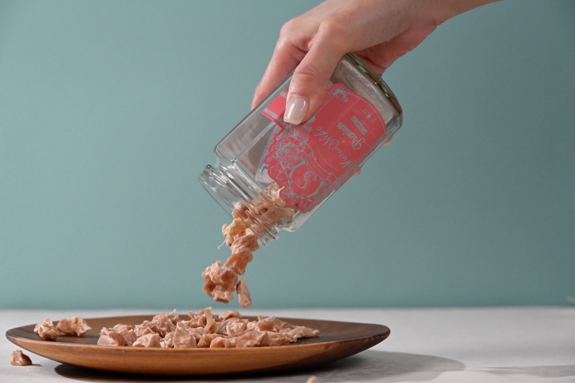 - 本製品は天然素材のみを使用し、人工の着色料、香料、保存料は一切使用していません。そのため、色や形、大きさ、においに個体差が見られる場合がございます。また、表面に白い粉(アミノ酸やカルシウムの結晶)が出ることがありますが、これらは素材由来の成分であり、品質には問題ございませんのでご安心ください。