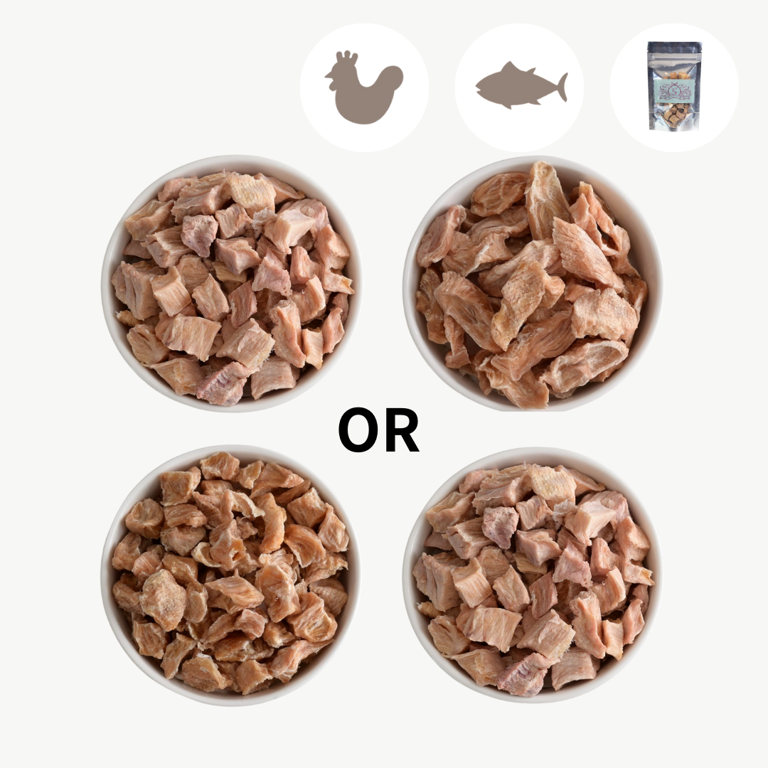 【お試しに最適!】愛猫・愛犬が喜ぶ、2つの人気フレーバーをパウチセットで!「国産ささみ」と「国産びんちょうまぐろ」のサクサクジャーキー。
