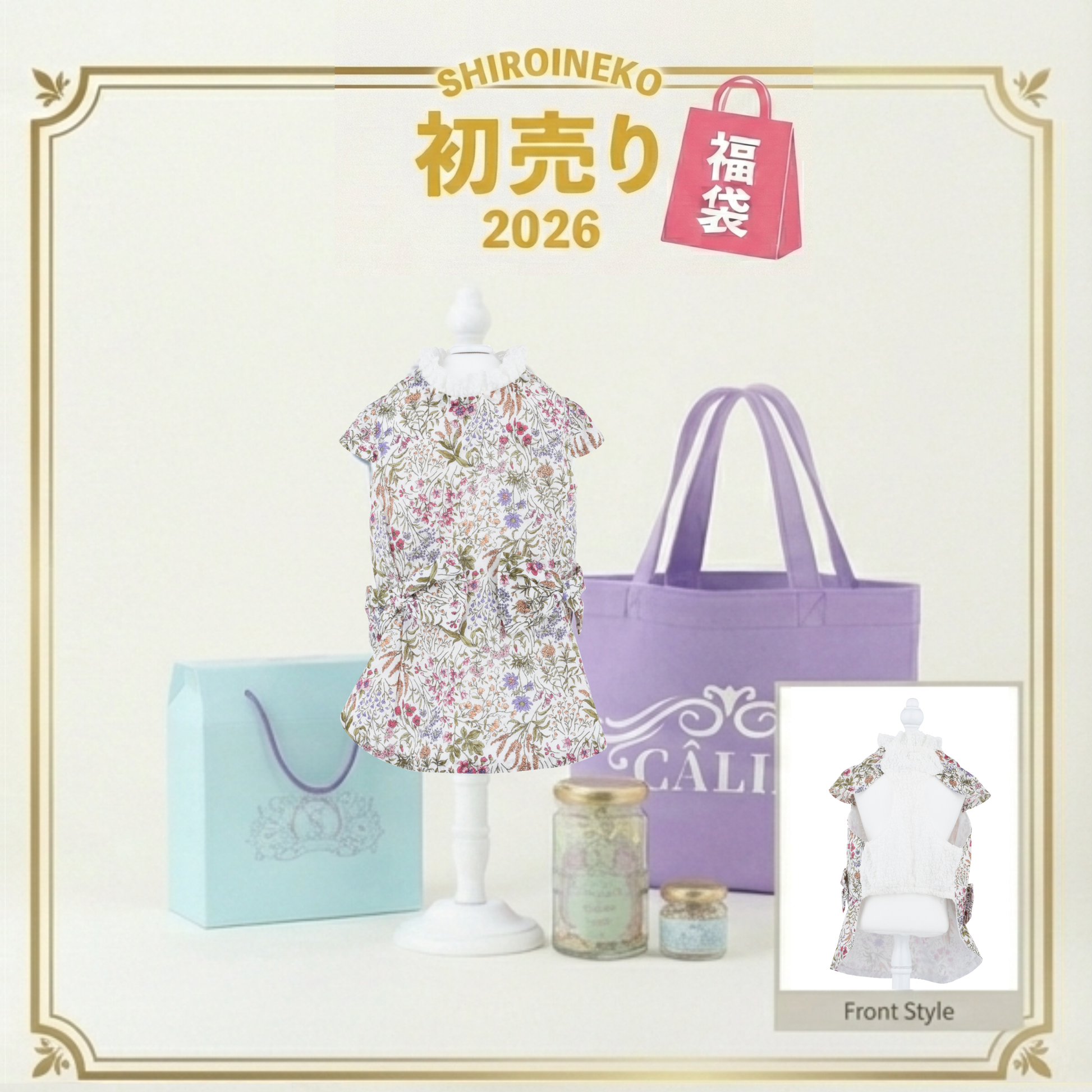 2026年の初商いは、しろいねこが誇るラグジュアリーな世界観を凝縮した、数量限定のプレミアムセットです。 メインとなるのは、まるでオートクチュールのような美しさと着心地を兼ね備えた「Câlin(カラン)」の猫服。福袋でありながら「サイズが選べる」特別仕様で、愛猫にぴったりの一着をお届けします。さらに、美食家の猫ちゃんも唸る最高級マグロジャーキーとふりかけをセットにしました。 総額約18,000円相当のアイテムが詰まったこのコフレで、愛猫との絆が深まる素敵な一年をスタートさせませんか。