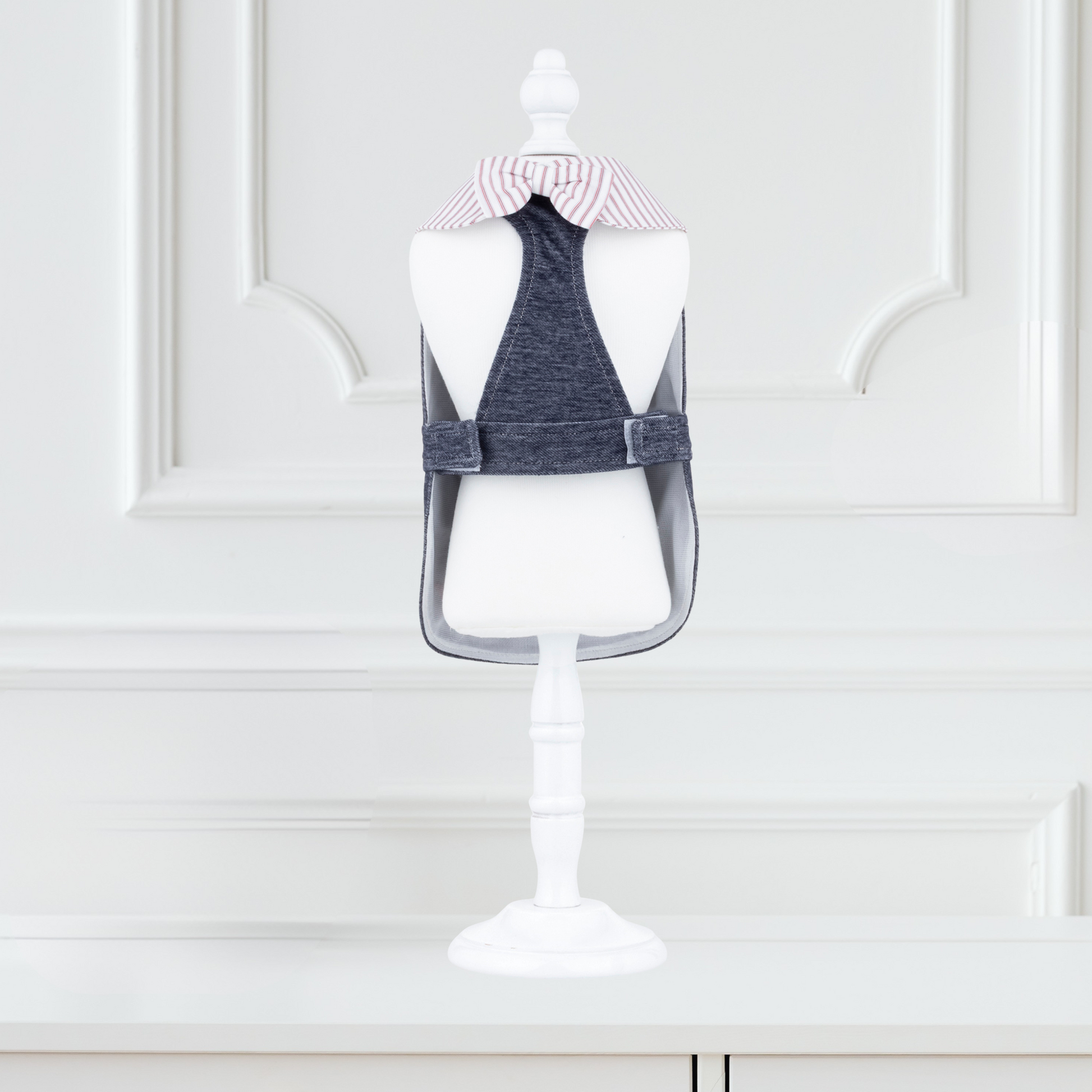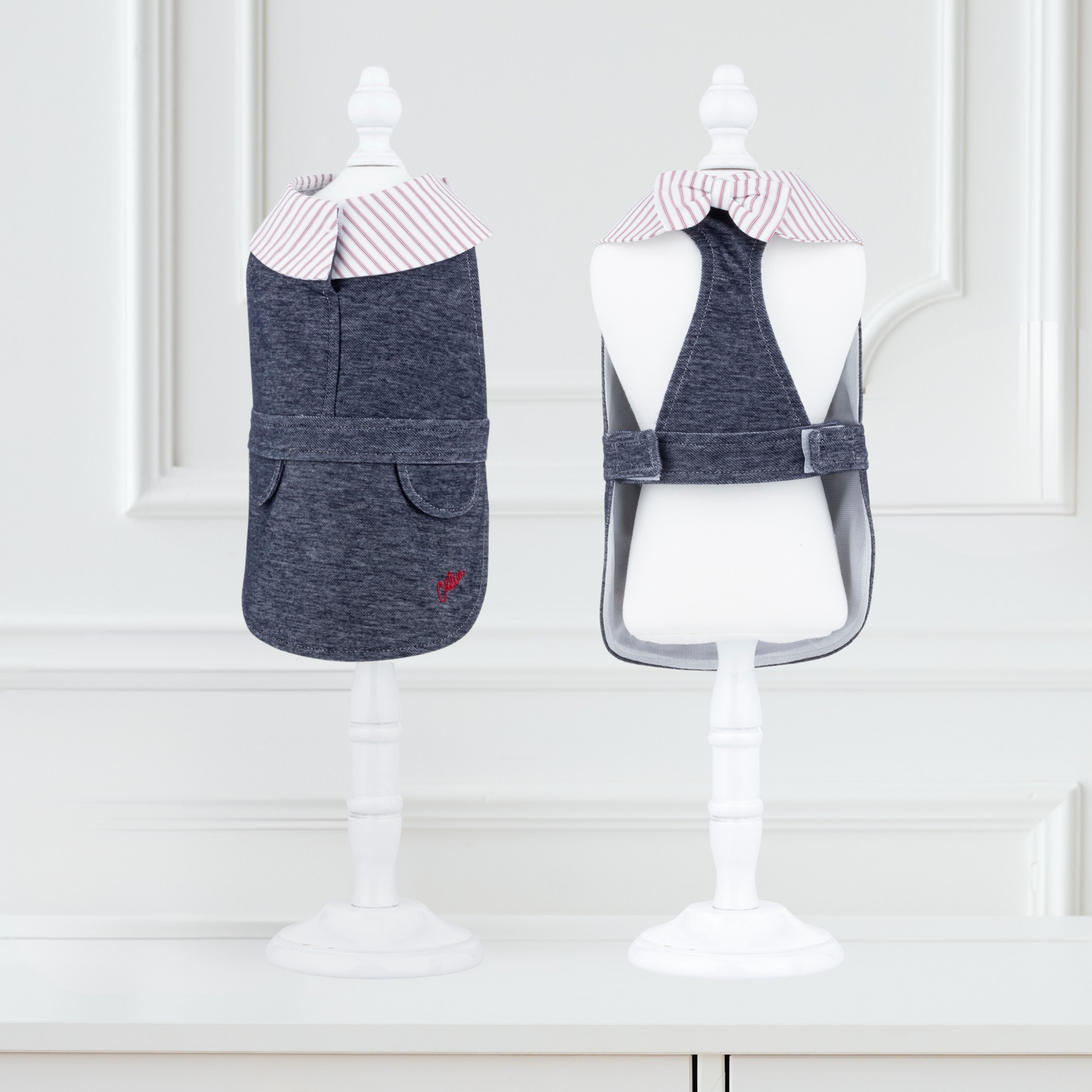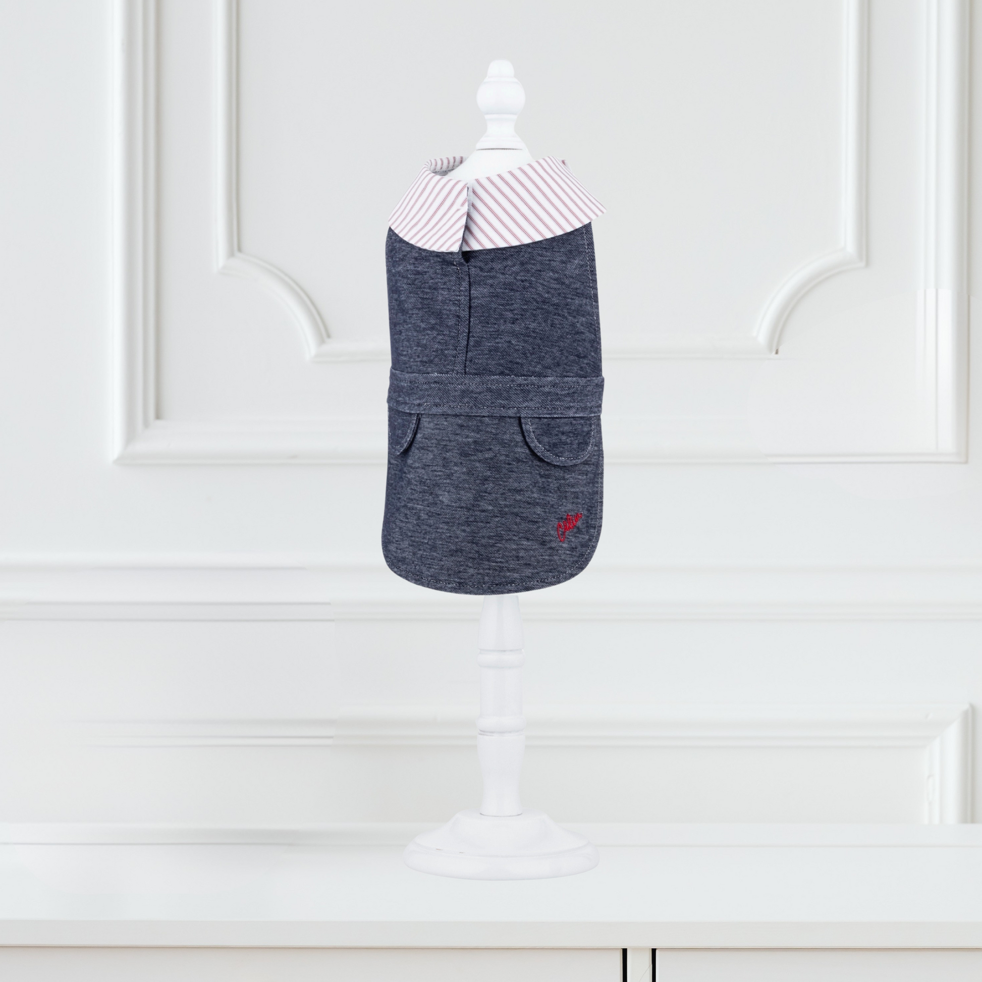 落ち着いたインディゴブルーが、洗練された大人の雰囲気を醸し出す。 2025年春夏コレクションからお届けする「Calin デニム カラー(インディゴブルー)」は、肌触りの良い上質なデニム風素材と、長毛の猫ちゃんにも美しく映える襟のデザインが特徴の、こだわりの猫服です。 型崩れしにくく、毎日のお手入れも簡単。アクティブな日常にも、特別なお出かけにも、自信を持っておすすめできる一着です。