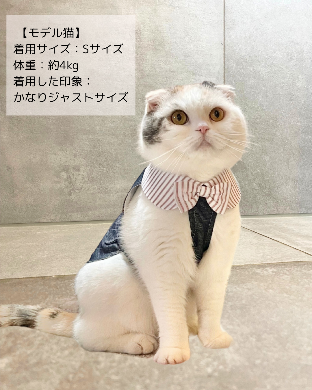 ・長毛の猫ちゃんもすっきり!計算された襟のデザイン 長毛種の猫ちゃんでも毛がもたつかず、すっきりと上品に着こなせるようデザインされた襟元がポイント。どんな毛色の猫ちゃんにも似合い、知的な魅力を引き立てます。
