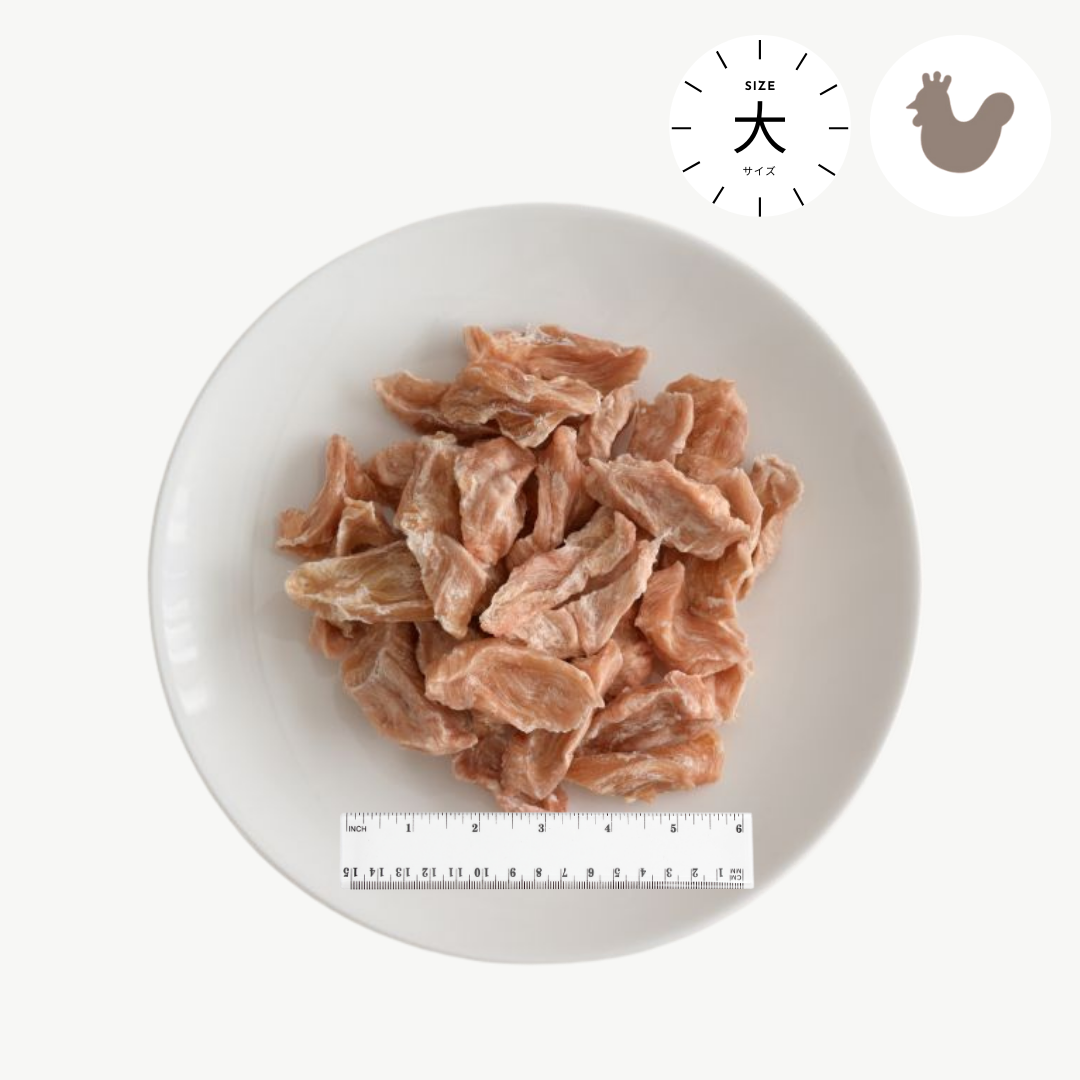 ・厳選された国産鶏ささみ100%使用 大切な家族には、安心できるものを。人間用の食品としても通用するレベルの、高品質な国産鶏ささみだけを使用しています。