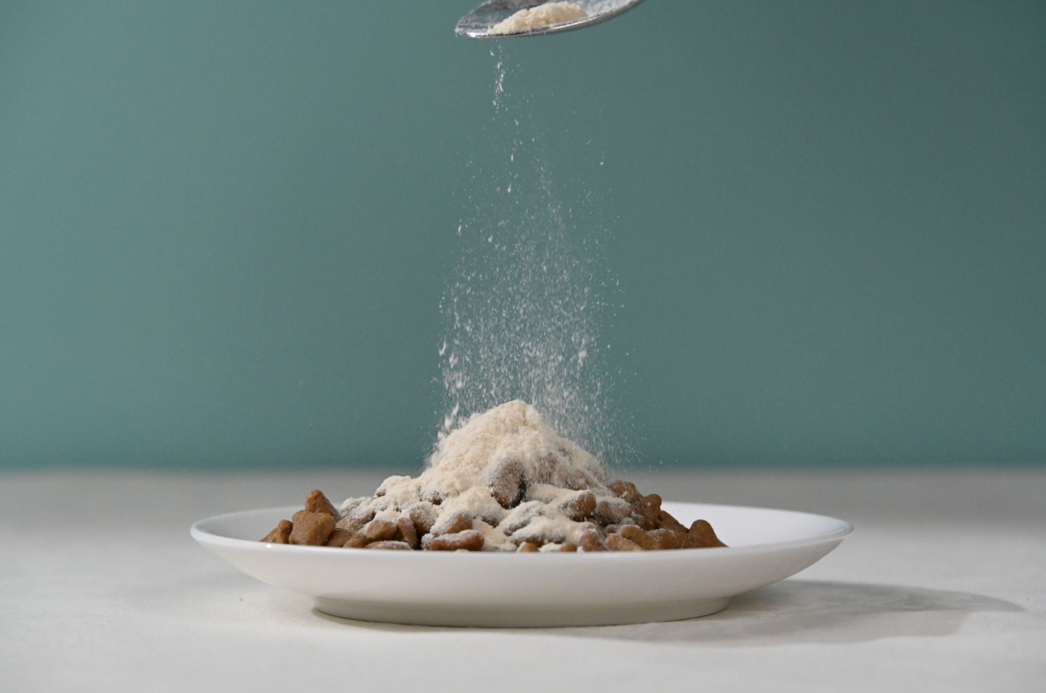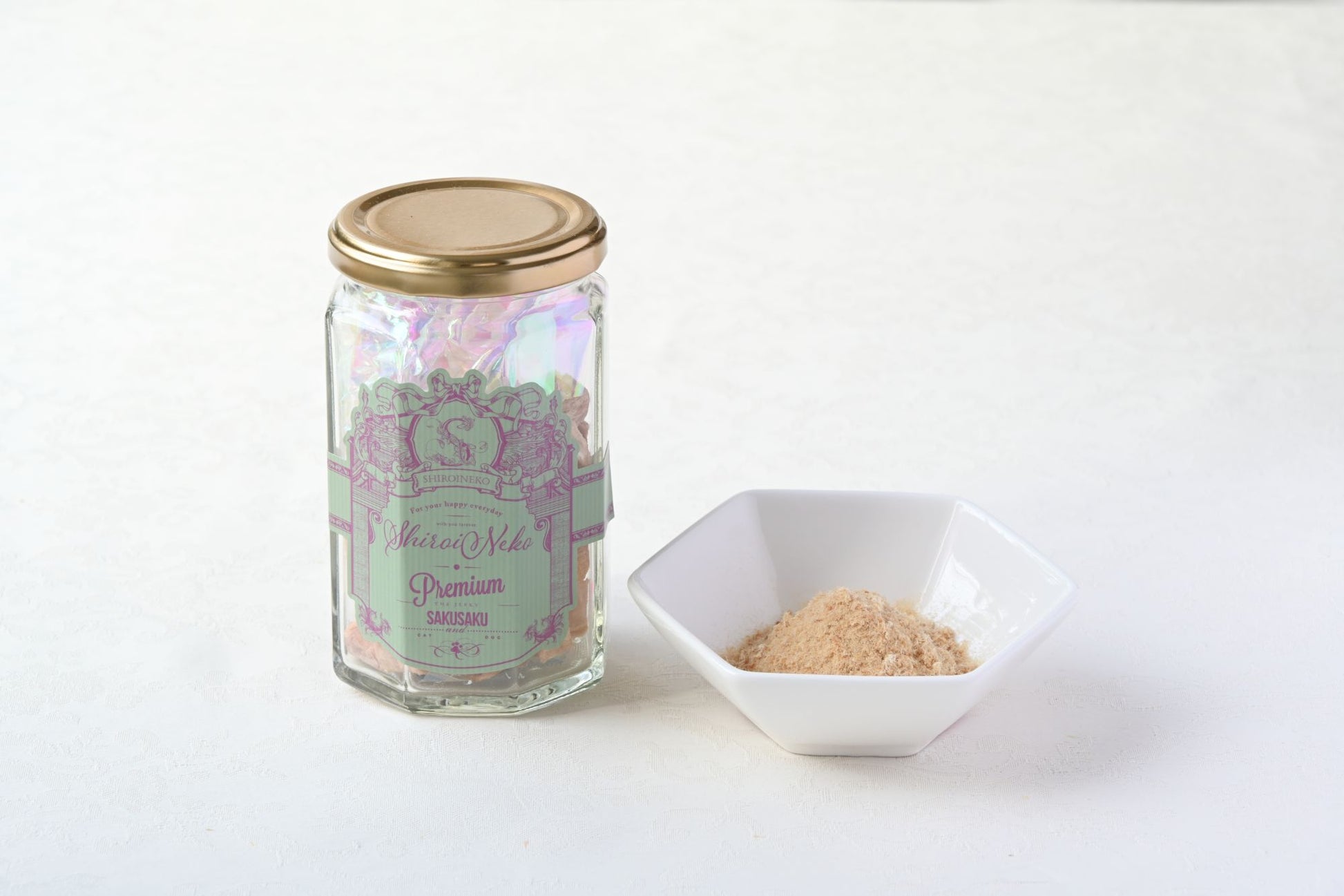 ・雲のようなふわっふわFURIKAKE "びんちょうまぐろ" 上記のこだわりジャーキーを、さらに細かく、まるで雲のようにふわっふわな粉末状にしました。いつものフードにかけるだけで、食欲をそそる香りが広がり、あっという間に完食!お薬を飲ませる際にも便利です。